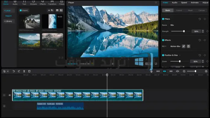 - التحكم في السرعة: يمكنك تسريع أو تبطيء مقاطع الفيديو باستخدام أدوات التحكم في السرعة.