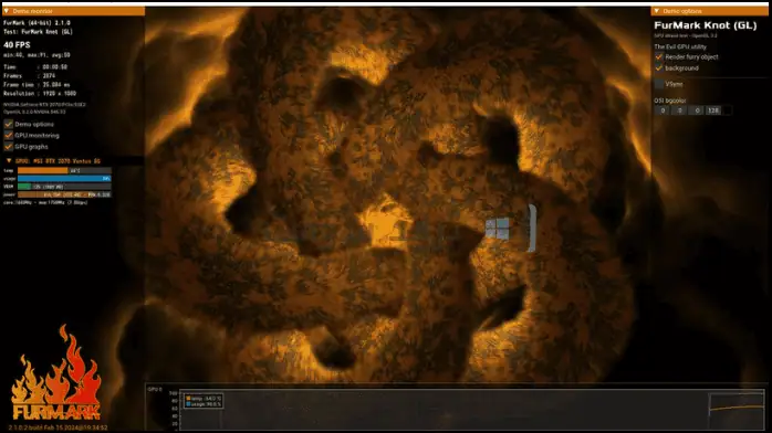 تحت اسم “FurMark”، يعمل البرنامج الذي تم إصداره في عام 2007 من خلال اختبار العرض “الدونات” لقياس أداء تبريد وحدة معالجة الرسوميات أثناء إنشاء درجات حرارة عالية. يوفر النظام مراقبة مستمرة لمستويات درجة الحرارة بالإضافة إلى عرض أداء سرعة الساعة وبيانات تشغيل المروحة في الوقت الفعلي. في حين أن فعالية البرنامج عالية. قد يعجبك أيضاً: تحميل برنامج WinAMP