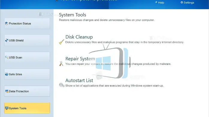 يمكنك إنشاء كلمة مرور للفلاش درايف لضمان عدم حذف البيانات والملفات منه لأي سبب من قبل برامج أخرى أو فيروسات، كما أضافت الشركة المطورة للبرنامج بعض الأدوات لفحص وتنظيف النظام من الملفات المؤقتة بشكل دوري وإصلاح البرامج والملفات التي تضررت بسبب الفيروسات قبل الفحص.