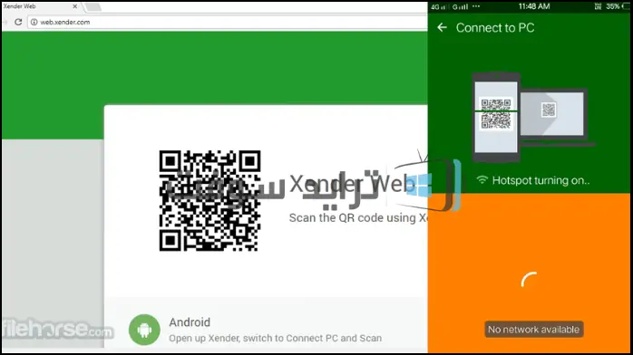 لا, تحميل Xender مهكر مجانا لا يحتاج إلى الإنترنت لنقل الملفات من الموبايل إلى الكمبيوتر, بل يعتمد على Hotspot.