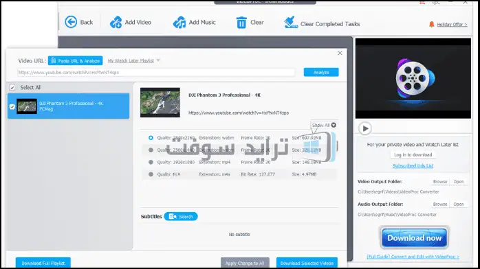 تمنح أدوات تنزيل برنامج Youtube Downloader للكمبيوتر للمستخدمين القدرة على تحديد دقة الفيديو بين 480 بكسل و4K وفقًا لتفضيلات الدقة وخيارات دقة الفيديو المتاحة.